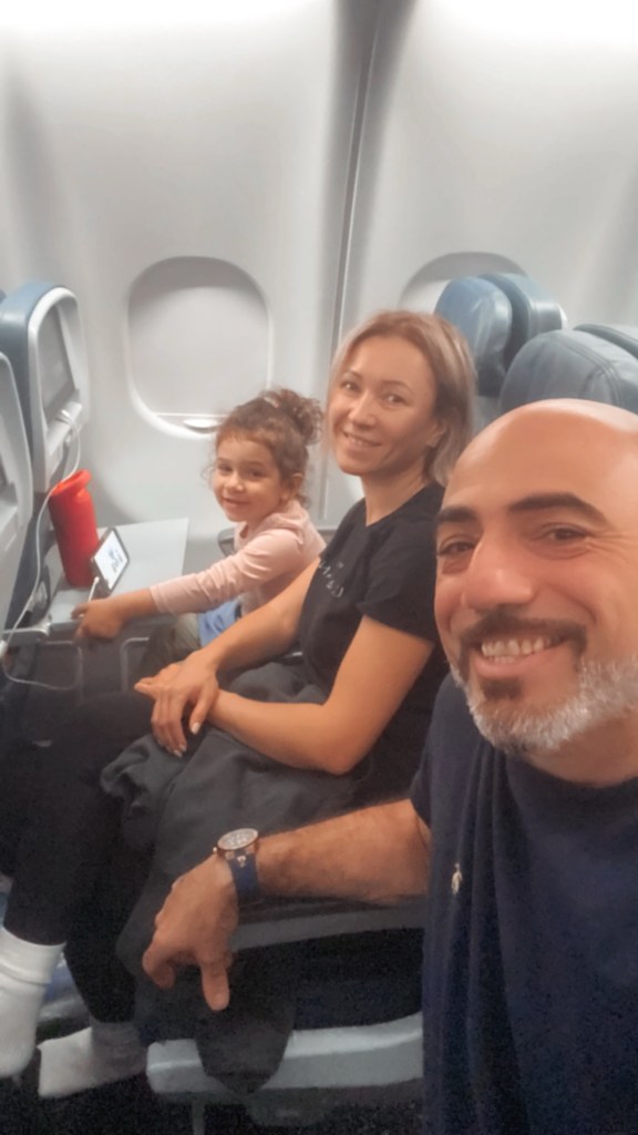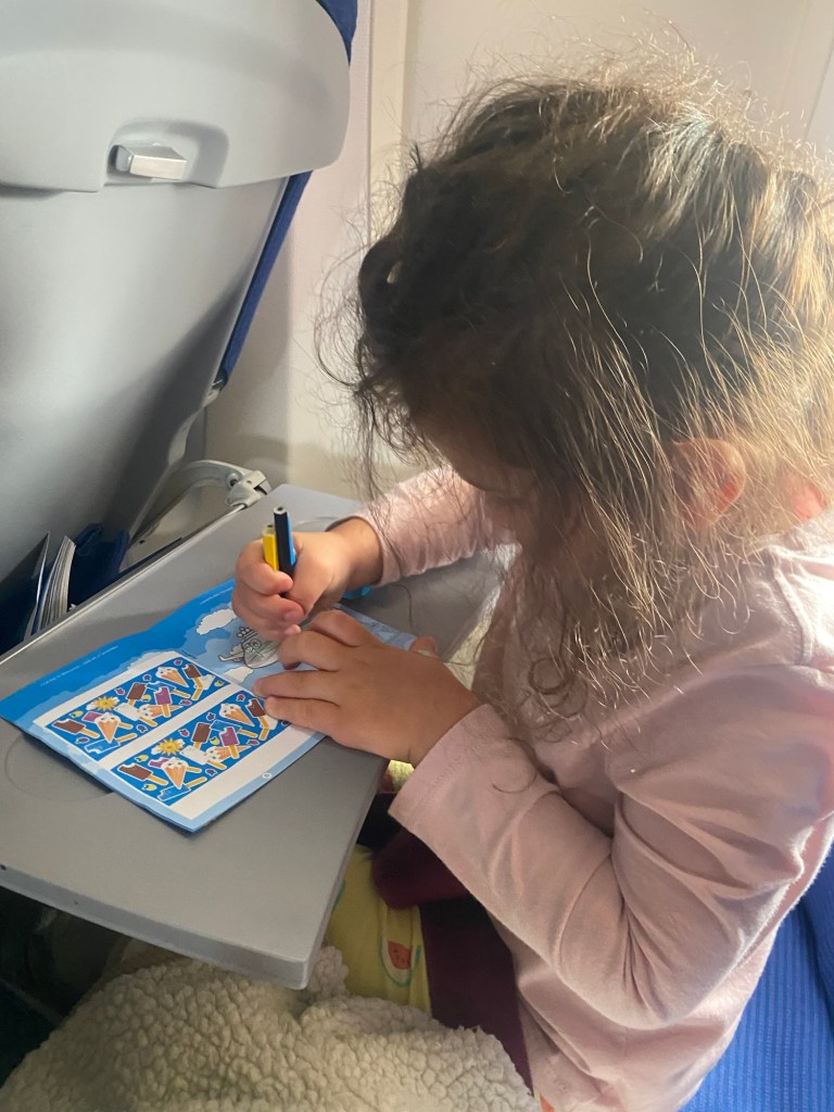 If you ask how am I flying overseas for so many hours with a toddler, here are my tips: get an overnight flight, so they can sleep, snacks, prep food (mine doesn’t eat the airlines food), stickers, books, toys, art and a headphones for cartoons. Yes, I let my kid to watch cartoons on a flight. Basically, switch activities from one to another unless he/she sleeps the whole flight.