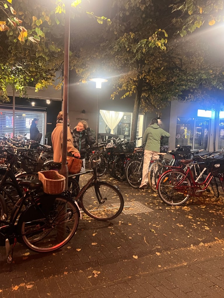 The picture that struck me the most was a beautiful young lady with a Chanel bag, red kitten heels shoes and long beige trench riding a bicycle. You’ll see a lot of that – beautiful stylish people riding bikes in Copenhagen. It’s a norm, it’s eco, its fitness and healthy lifestyle. To summarize it, be mindful of your wardrobe choices, so you feel great about yourself in Copenhagen.
